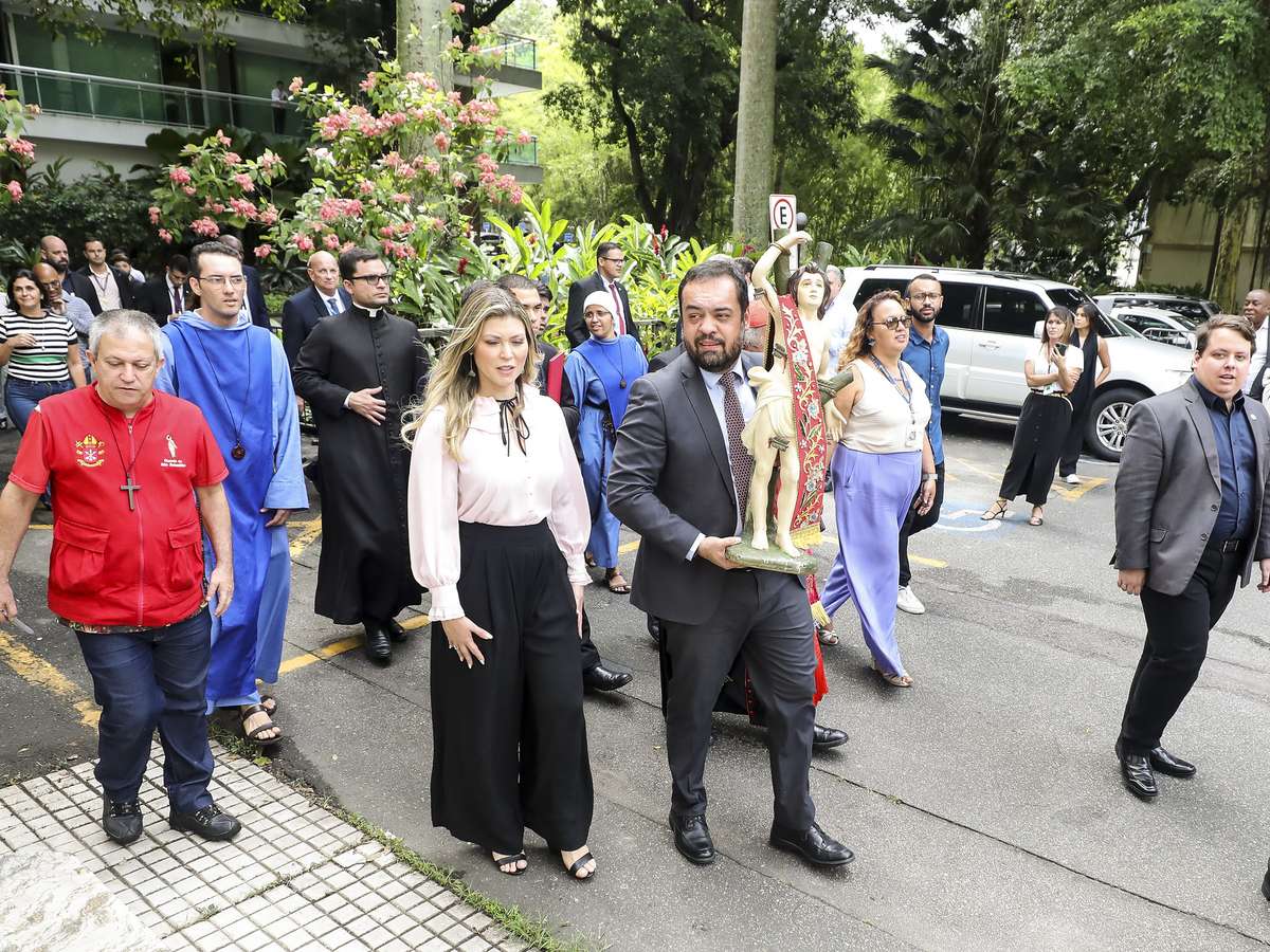 O governador, a primeira-dama, Analine Castro, o vice-governador, Thiago Pampolha (União Brasil), e demais secretários receberam uma bênção especial, em seu gabinete. Na sequência, a imagem de São Sebastião seguiu, em procissão, para a Capela Santa Terezinha, no Palácio Guanabara, como parte da Trezena de São Sebastião, uma preparação para o dia do santo, celebrado no dia 20.