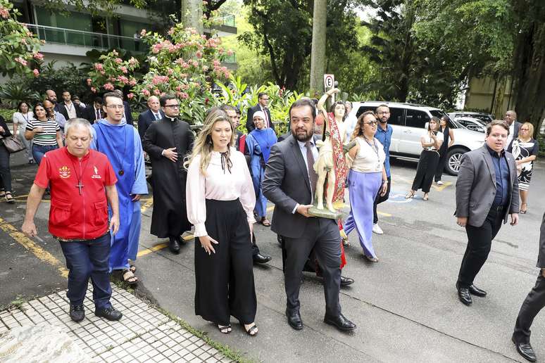 O evento faz parte da Trezena de São Sebastião, uma preparação para o dia do santo, celebrado no dia 20 de janeiro Cláudio Castro recebe a imagem de São Sebastião no Palácio Guanabara