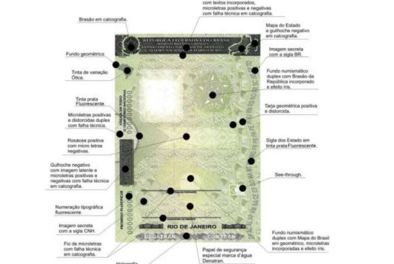 Produzida por empresas credenciadas, em modelo único, a CNH terá papel com marca d´água, tintas de variação ótica e fluorescente e imagens secretas. Os itens de controle de segurança incluem ainda mais elementos em relevo e em microimpressão. O fundo do documento ficará mais amarelado.