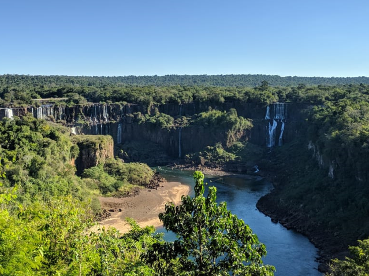 Famosa pelas quedas d'água, que atingiram a menor vazão do ano, bacia do Iguaçu perdeu um quinto da vegetação original desde 1984.