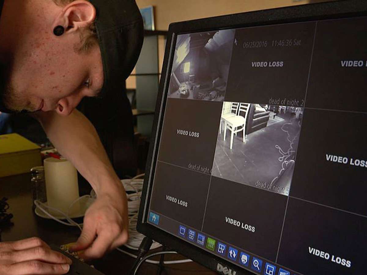 Usando camisetas pretas com o logotipo da empresa, a equipe começou a posicionar câmeras comuns e outras que captam calor para tentar registrar algum movimento sobrenatural.