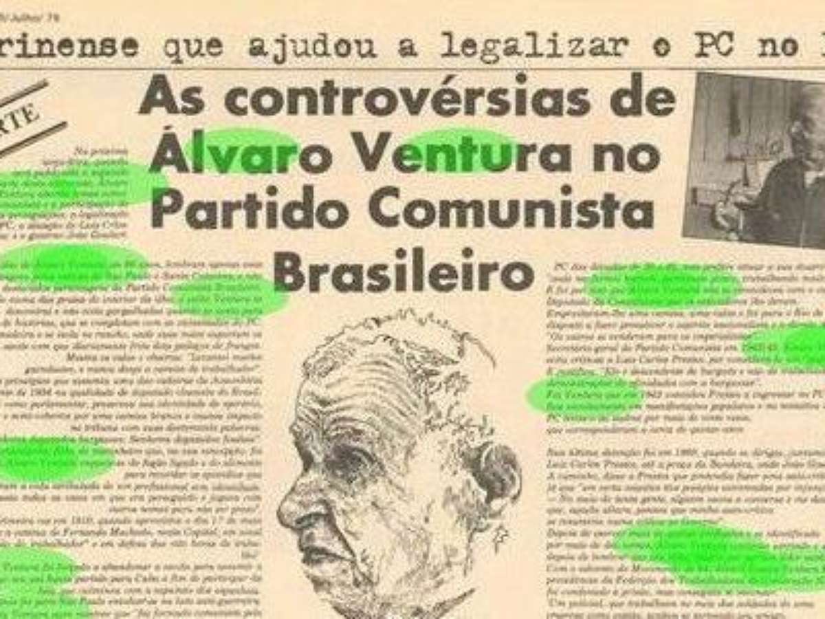 Em 1934, durante discurso na Câmara dos Deputados, Alvaro Ventura se assumia comunista, algo inédito na Casa até então