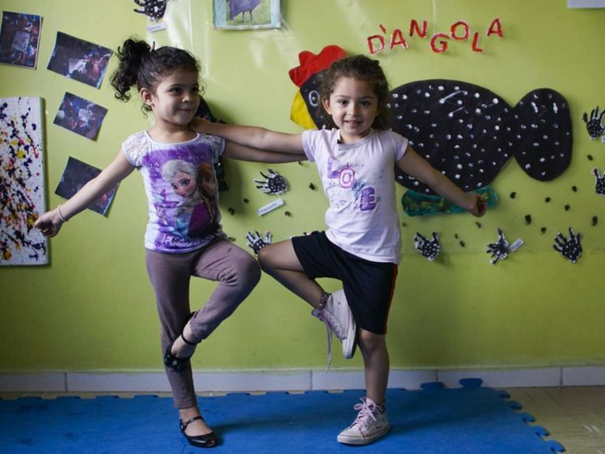 Na creche, que é mantida por uma ONG em parceria com a prefeitura, as crianças maiores fazem massagens umas nas outras.