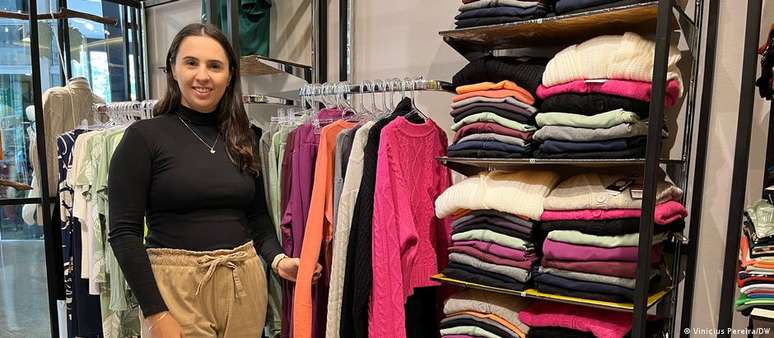 "Eu trabalho há nove anos como vendedora e nunca vi um calor assim nessa época", afirma Pamela Moura, 36 anos, funcionária de uma loja em Monte Sião. "De cabeça, falo que a queda nas vendas é de mais de 40%. Agora, a gente tenta colocar as peças em promoção na vitrine, mas mesmo assim, sem tanta gente por aqui, fica complicado", diz.