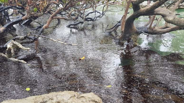 Ao chegar ao manguezal, o petróleo primeiro provoca um impacto agudo, diz Coelho Júnior à BBC News Brasil. Dependendo da maré, pode recobrir as raízes das plantas de mangue, o caule das árvores e os organismos que vivem ali.