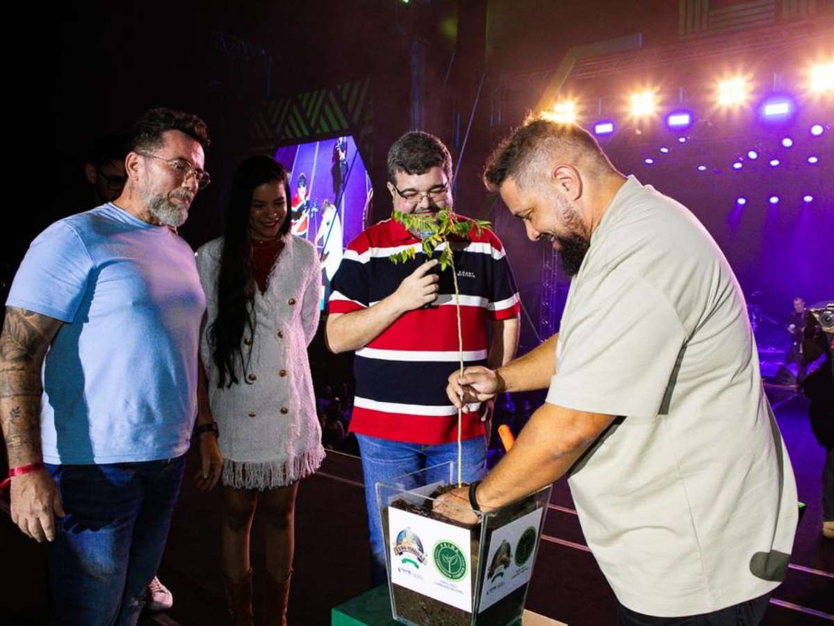 Durante a festa que terminou neste domingo, os artistas, pela primeira vez em suas carreiras, plantaram árvores de mata atlântica. Foi a primeira expo agropecuária carbono neutro do país Expo Itaguaí termina deixando legado histórico para o meio ambiente