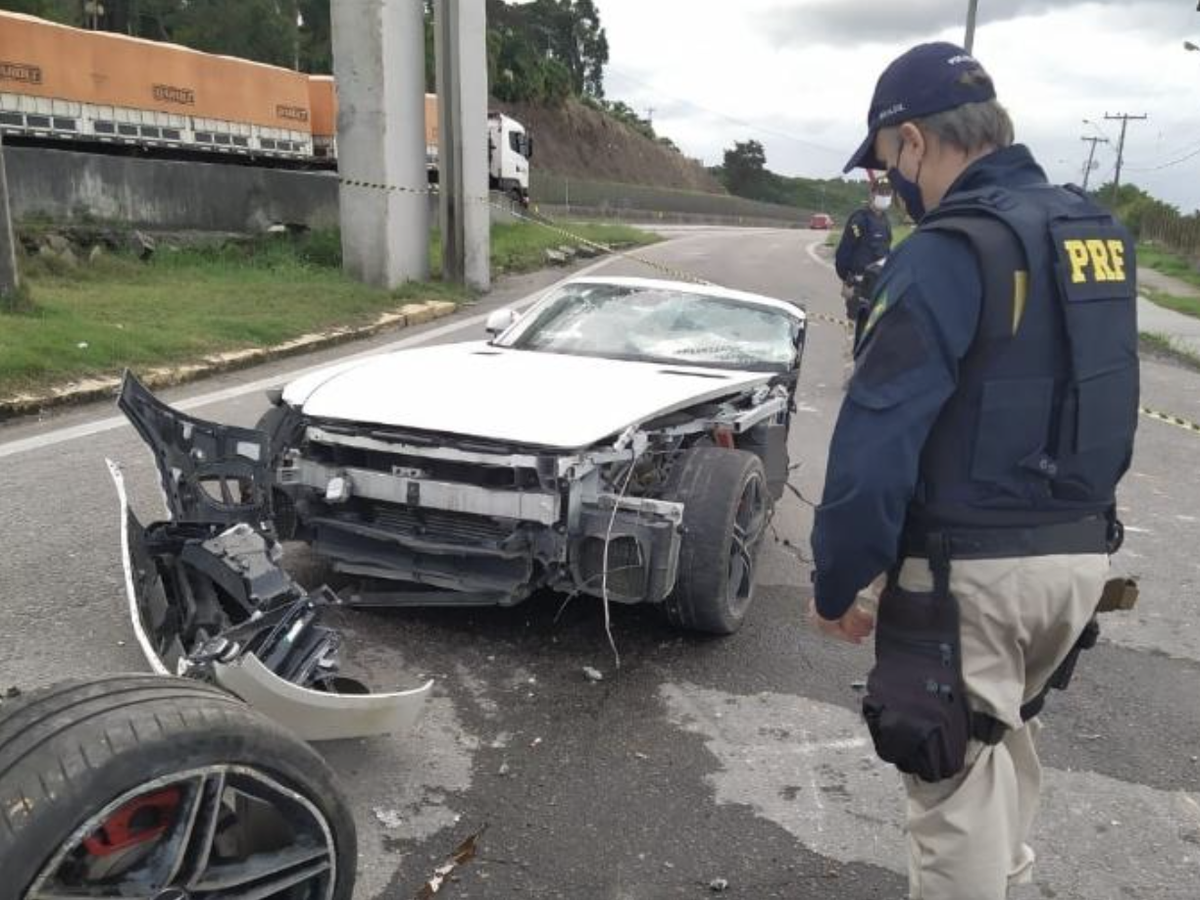 O carro esportivo foi totalmente danificado, e chegou a partir ao meio na colisão. De acordo com a perícia, o acidente teria ocorrido a uma velocidade superior a 180 km/h, com o empresário ao volante.