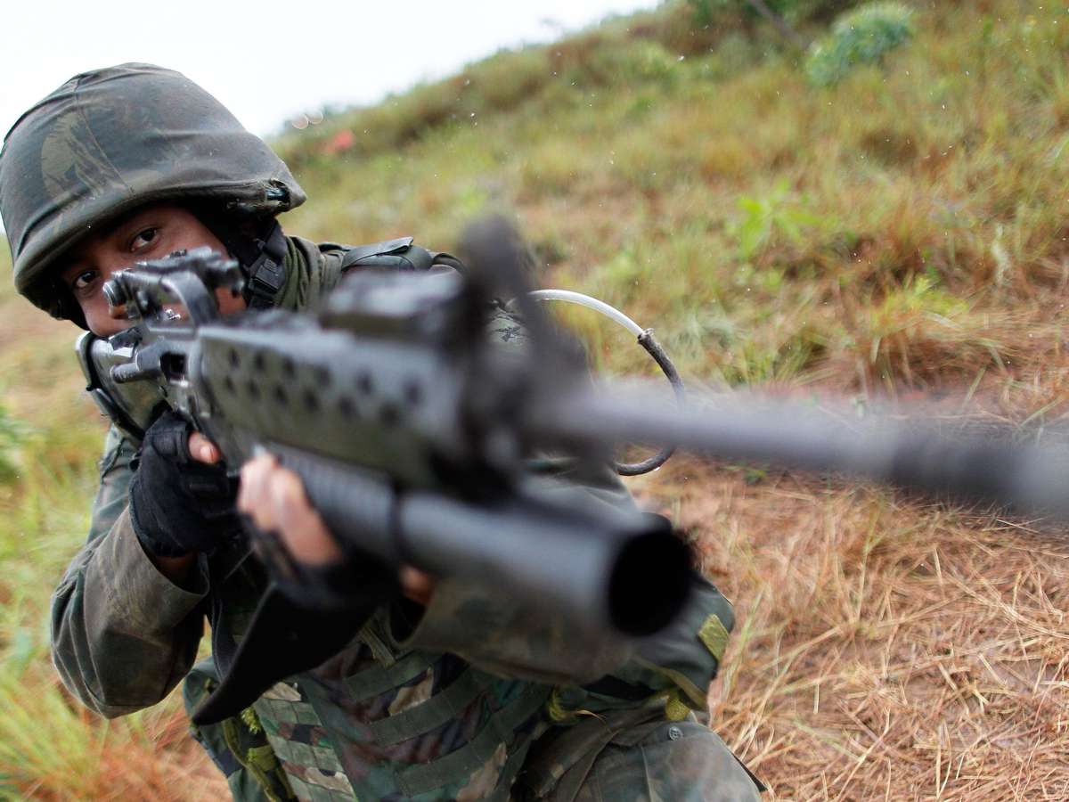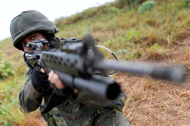 PUBLICIDADE Capa Notícias Brasil Brasil Checamos Política Carta Capital Perfil Brasil Intercept Brasil Agência Pública Fuzileiros navais fazem simulação de guerra no entorno do DF Operação Formosa mobiliza cerca de 2 mil militares da Marinha do Brasil até 2 de novembro Compartilhar Fuzileiro naval participa de exercício simulado no campo de instrução de Formosa, no entorno do Distrito Federal Foto: Reuters Fuzileiro naval participa de exercício simulado no campo de instrução de Formosa, no entorno do Distrito Federal Foto: Reuters Operação Formosa 2013 é considerada um dos maiores treinamentos já feito pelas Forças Armadas no País Foto: Reuters Na operação, militares simulam situações de conflito armado Foto: Reuters Tanque faz disparo durante a Operação Formosa 2013 Foto: Reuters Tempo adverso é apenas um dos obstáculos a serem enfrentados pelos militares Foto: Reuters Simulação tem o objetivo de manter preparação do efetivo militar para qualquer situação de emergência Foto: Reuters Militares simulam confronto em meio à mata Foto: Reuters Blindados e tanques participam do treinamento Foto: Reuters Operadores de artilharia fazem disparos contra alvos Foto: Reuters Operação Formosa mobiliza cerca de 2 mil militares Foto: Reuters Militar descansa no interior de blindado durante a operação Foto: Reuters Membros das Forças Armadas usam máscara de gás para simular cenário adverso Foto: Reuters Cartuchos de munições deflagradas ficaram espalhados pelo chão Foto: Reuters Compartilhar Publicidade Compartilhar TAGS Notícias Publicidade