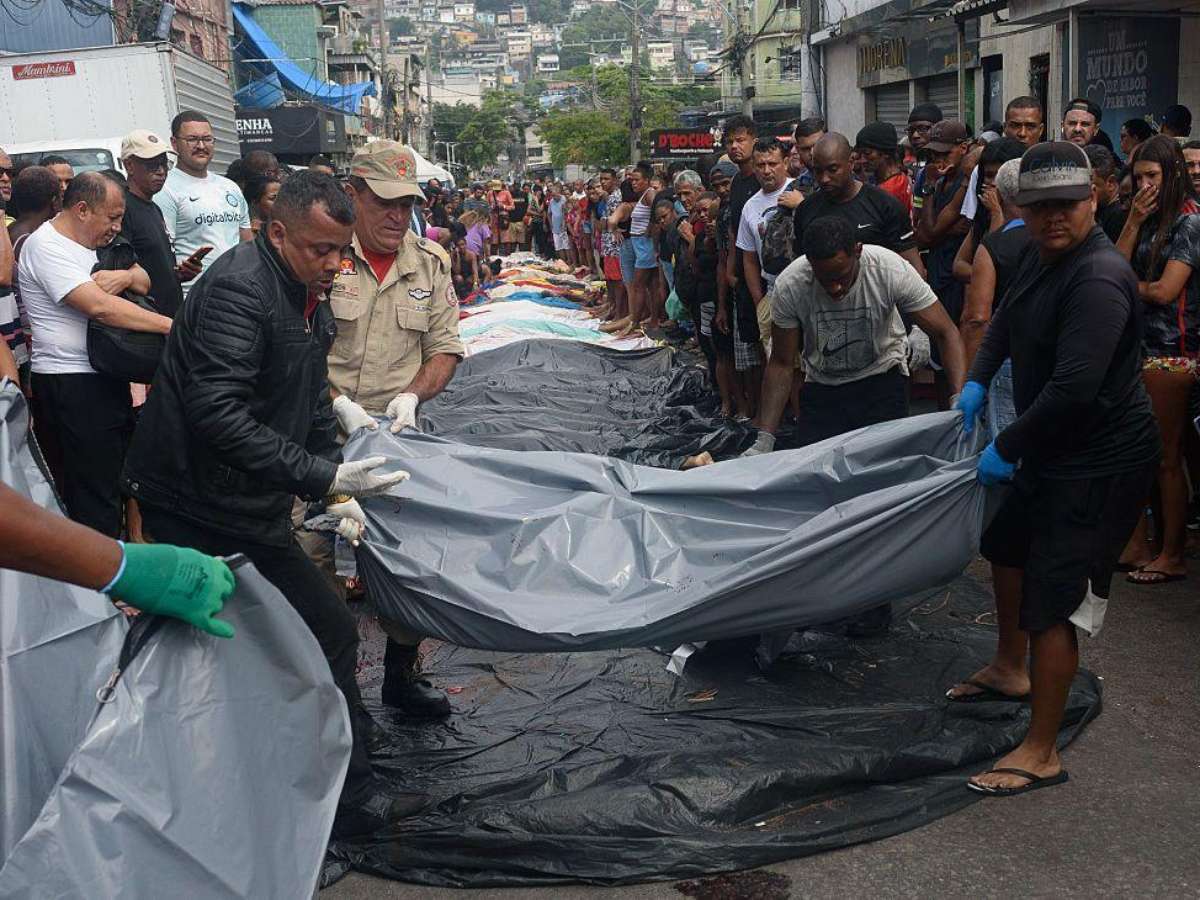 Durante a madrugada de quarta-feira (29/10), moradores da região carregaram pelo menos 50 corpos da mata para a Praça São Lucas, que fica em uma das principais avenidas, para que eles pudessem ser identificados.