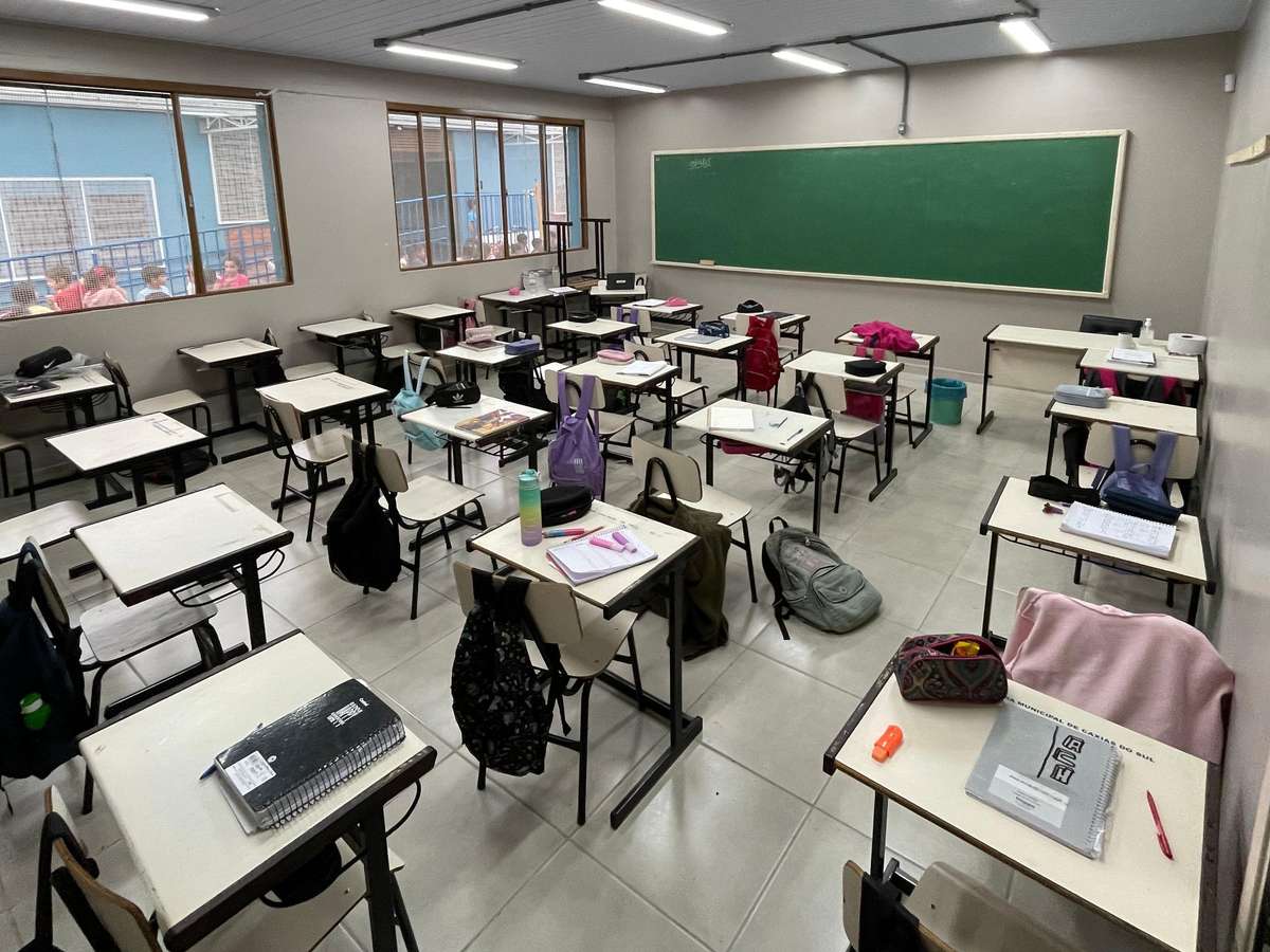 A aula da professora Luana (seu nome também foi alterado) havia começado um pouco antes. Um dos alunos já havia desligado a câmera da sala de aula da tomada e guardado na mochila. Outro foi, então, fechar a porta.