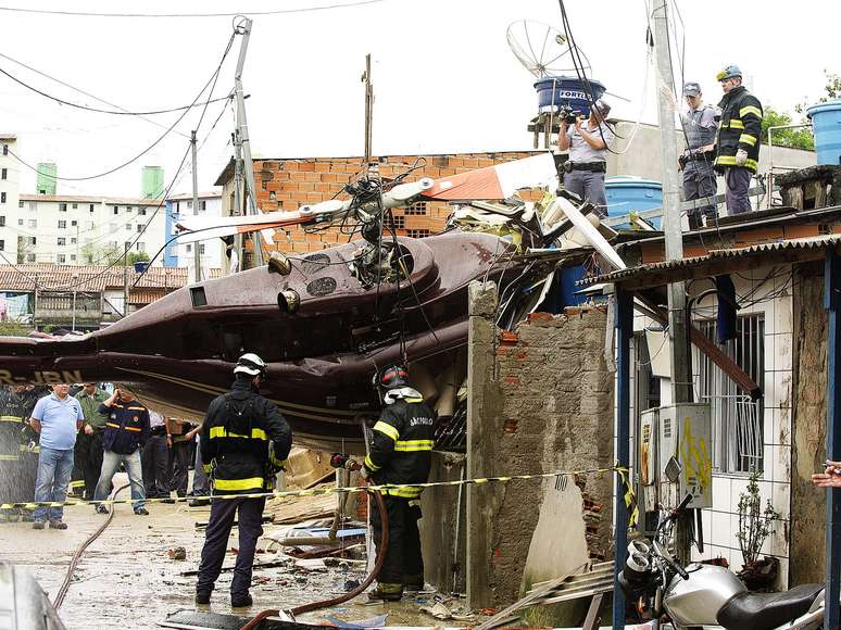 Emerson Alves Santana, 20 anos, foi um dos primeiros a chegar ao local e ajudar uma mulher a sair da aeronave rapidamente. 'A gente tinha muito medo que explodisse porque o helicóptero pegou os fios de alta tensão', contou ele