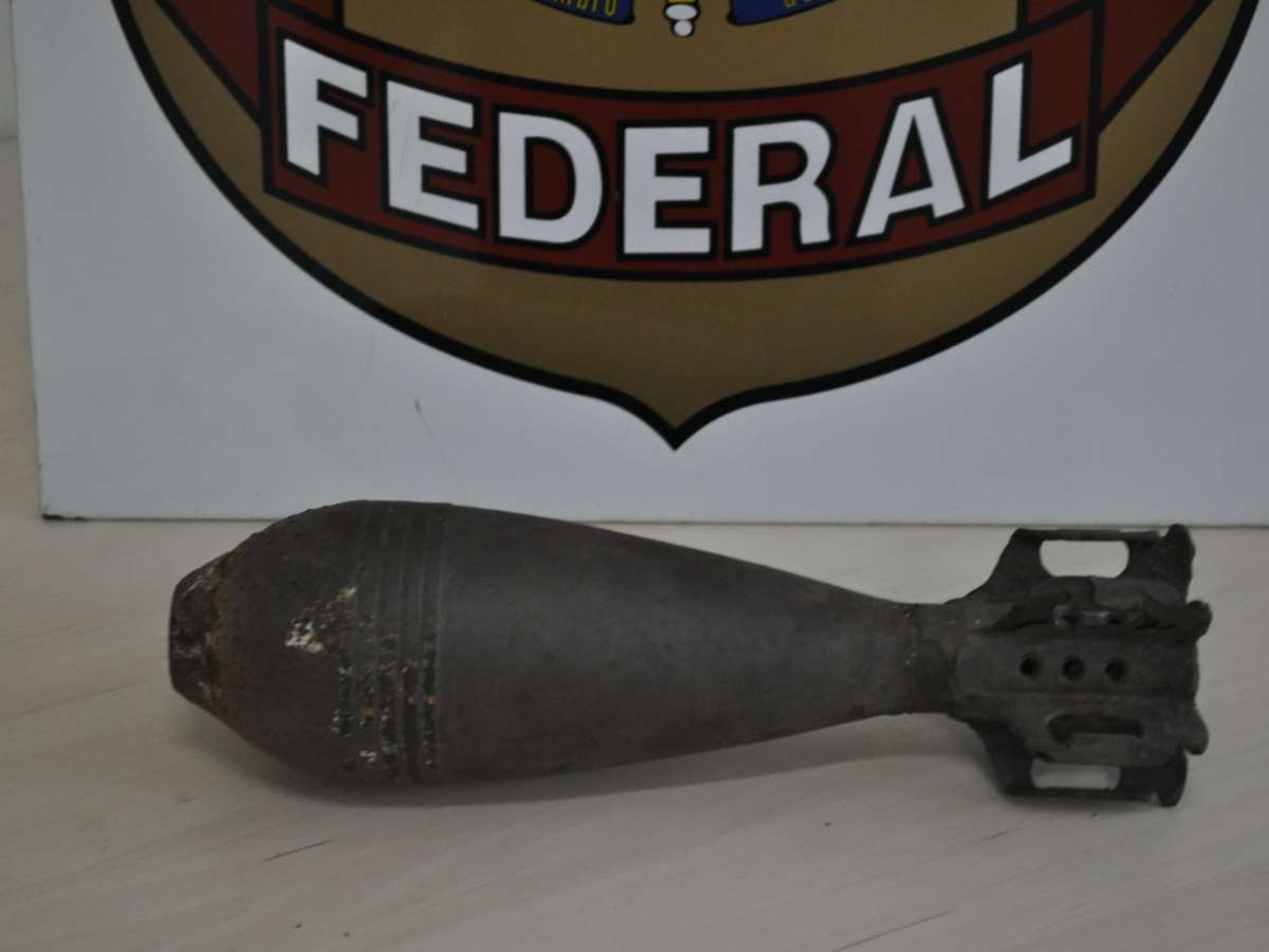 Um homem entregou uma granada à Polícia Federal no sábado, durante uma campanha de desarmamento no Recife. A munição de morteiro 82 milímetros era utilizada há vários anos como decoração na sala da casa onde o homem mora, segundo a PF.