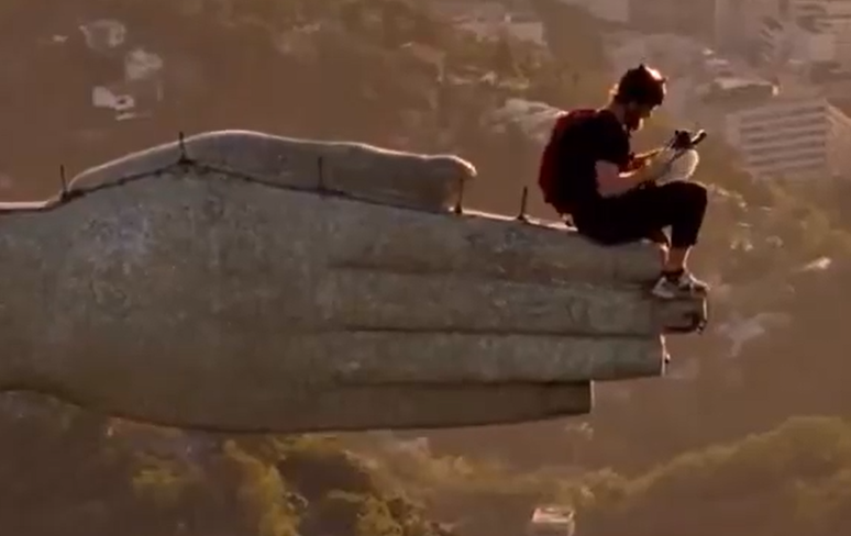 O salto, feito na modalidade base jump, ocorreu a partir da mão direita do Cristo, em direção à Lagoa Rodrigo de Freitas, na Zona Sul do Rio de Janeiro.