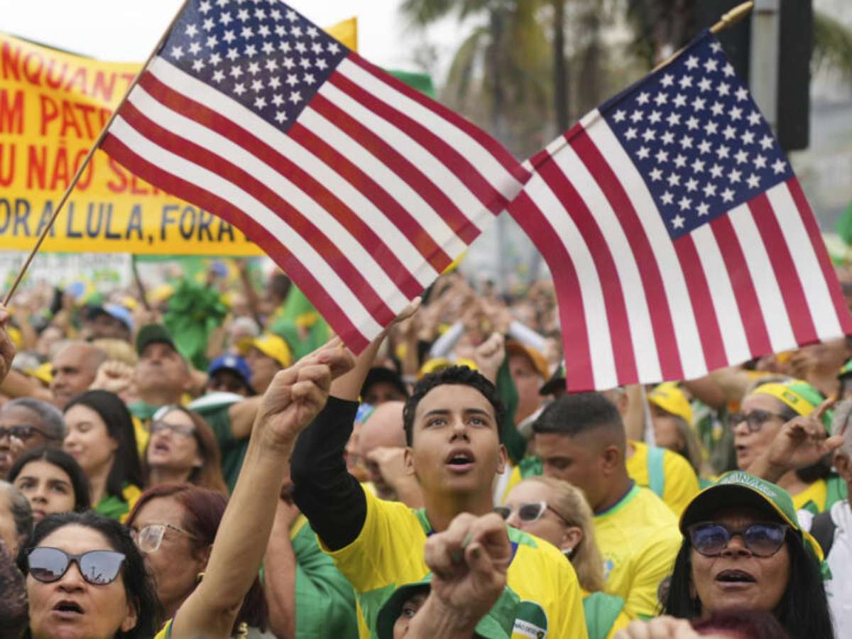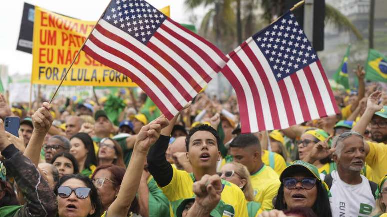 O correspondente do jornal francês Le Monde também relatou a presença de uma enorme bandeira norte-americana hasteada pela multidão, "como forma de implorar pela ajuda do presidente americano, Donald Trump, que impôs 50% de tarifas alfandegárias aos produtos brasileiros para defender seu protegido", explica o texto.