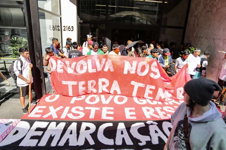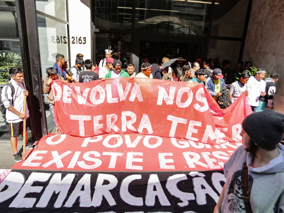 Um grupo de índios Guarani ocupou na manhã de hoje (30) a entrada do prédio onde fica o escritório da Presidência da República na Avenida Paulista, região central da capital. Eles protestam contra a decisão do Ministério da Justiça que anulou a demarcação da Terra Indígena do Jaraguá, na zona norte da cidade.