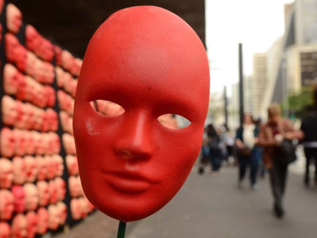 As máscaras com bochechas pintadas de vermelho, instaladas no vão do Masp, representam, segundo a coordenadora, a "vergonha" que políticos deveriam ter da atual situação do País. "Estão quase todos envolvidos em escândalos de corrupção. Estamos vivendo uma crise ética e moral muito grande e não vemos uma atitude de vergonha ou constrangimento."