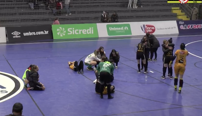 O final da partida de futsal feminino entre Taboão Magnus e Female Unochapecó na noite desta sexta-feira, 19, em Chapecó (SC) teve muita comoção das atletas de ambas as equipes.