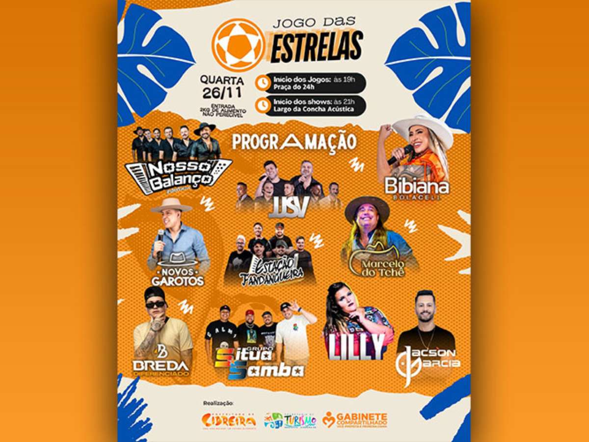 O tradicional Jogo das Estrelas, promovido pela Prefeitura de Cidreira por meio da Secretaria de Turismo e Desporto, ganhou nova data e uma programação ainda mais completa. A edição deste ano será realizada na quarta-feira, 26 de novembro, reunindo esporte, cultura e solidariedade em diferentes pontos da cidade.