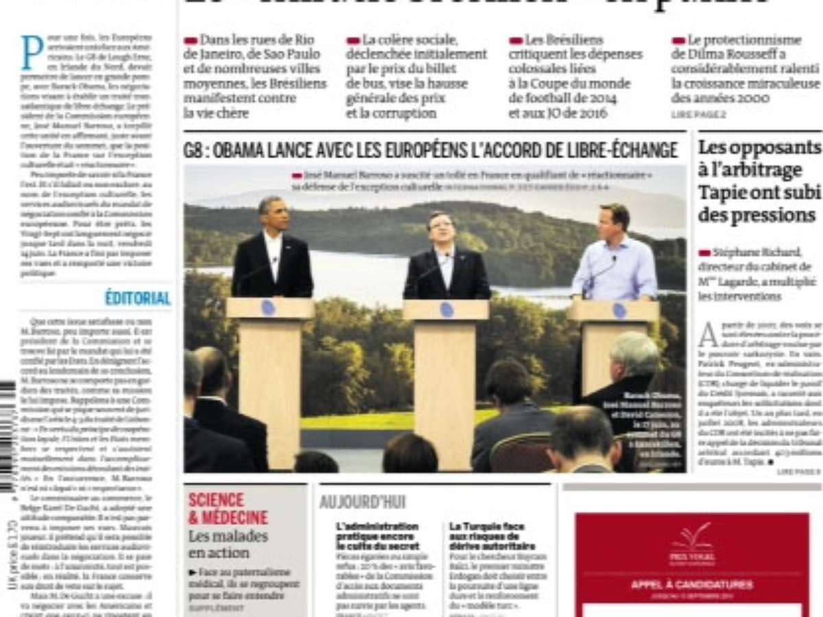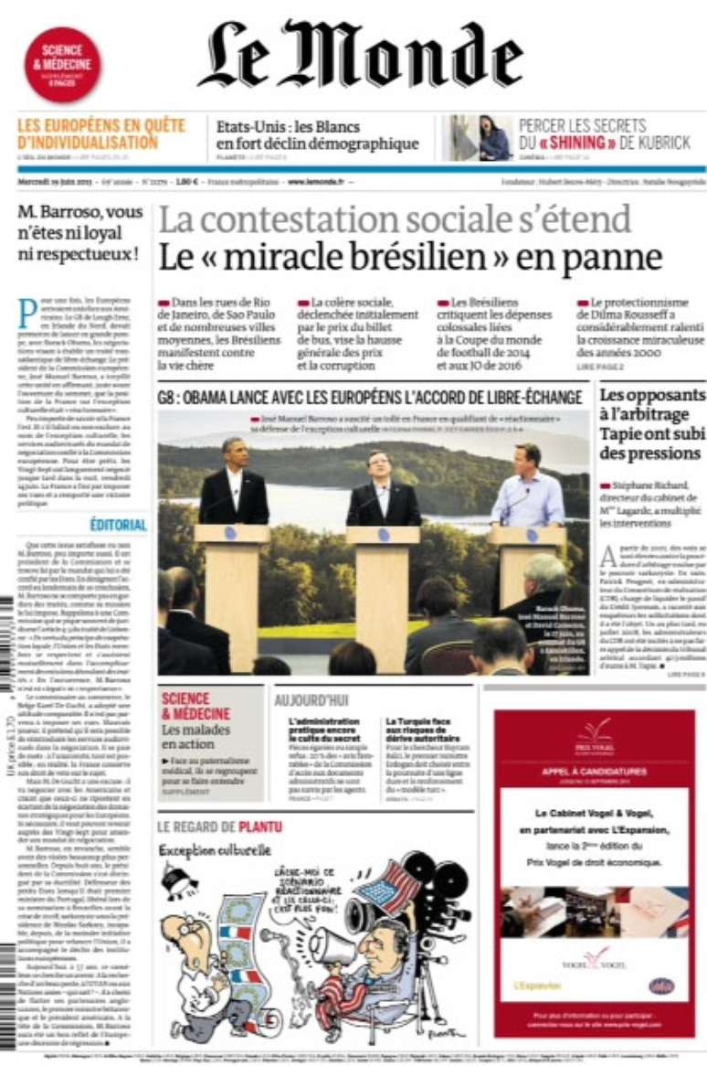"Ao vermos, dia após dia, os manifestantes cada vez mais números irem às ruas para criticar à má administração e as quantias abissais investidas na organização da Copa do Mundo, enquanto os serviços públicos como a saúde e a educação estão em um estado deplorável, podemos questionar se os dirigentes (do País) não tiveram o olho maior do que a barriga", escreveu o Le Monde.