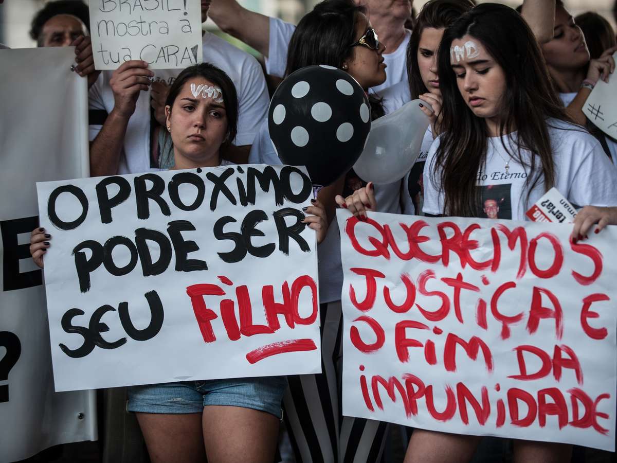 Parentes e amigos de pessoas que foram mortas em crimes cometidos por adolescentes fizeram, um protesto na Avenida Paulista para pedir a redução da maioridade penal
