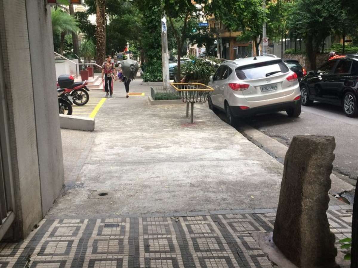 "Aquilo é um mictório de cães!", a outra responde. De calça jeans, tênis, mochila de marca e pulseira de prata, a vizinha parece apressada. Tem horário para ir ao médico.