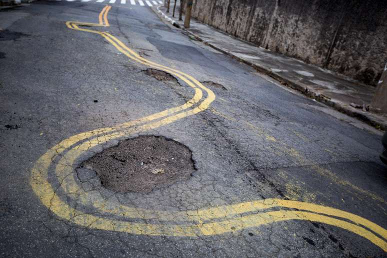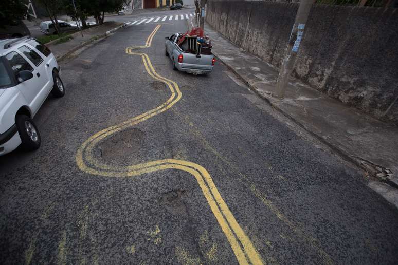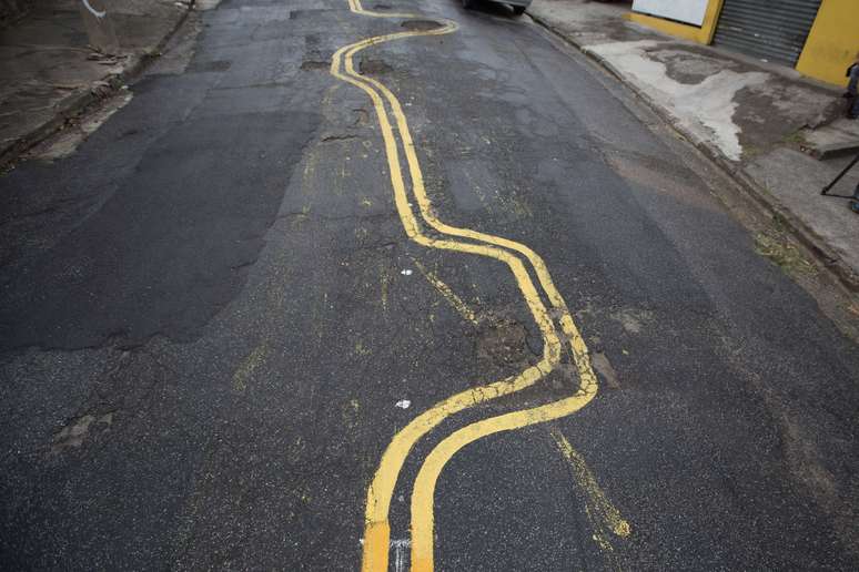 Em protesto contra os buracos e a falta de sinalização em uma via na zona leste de São Paulo, moradores acharam uma forma inusitada de chamar a atenção das autoridades: pintaram uma faixa no asfalto para alertar os veículos das irregularidades na pista.