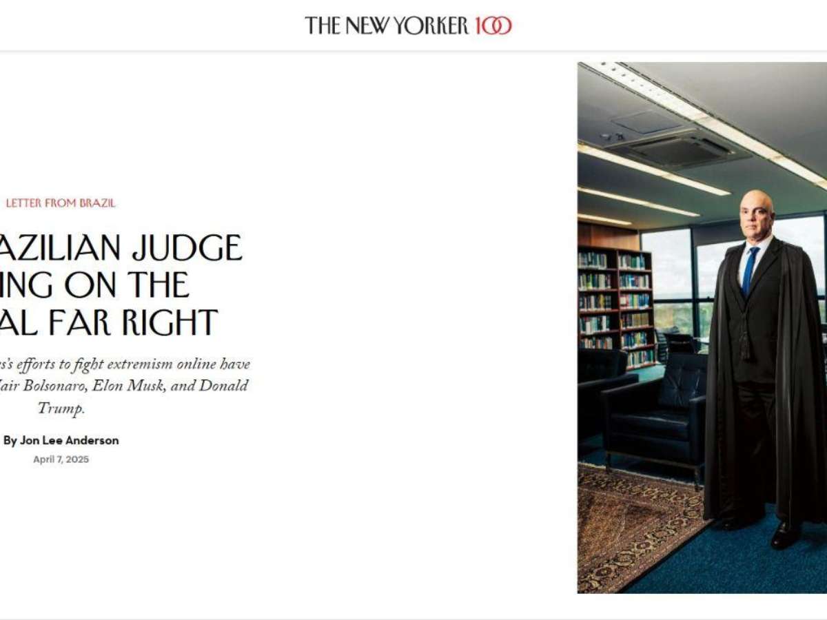 Um juiz poderoso - mas que está "testando os limites de sua autoridade" - numa cruzada contra a direita radical digital no mundo. É assim que o ministro Alexandre de Moraes, do Supremo Tribunal Federal (STF) é apresentado aos leitores da revista americana The New Yorker, uma das mais influentes do mundo, em um perfil publicado na segunda-feira (07/04).