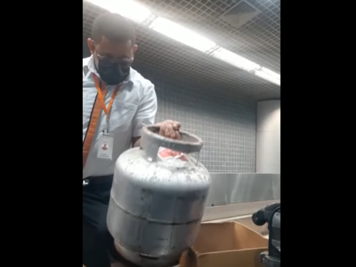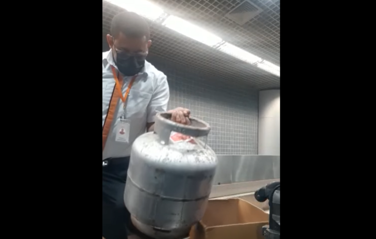 Um vídeo que circula nas redes sociais mostra o momento em que o funcionário da companhia aérea encontra o botijão. Ao retirar o item do pacote, o homem diz para a passageira, que não aparece no vídeo: "Só estou mostrando que isso aqui não pode ser despachado não. Isso é praticamente uma bomba. A senhora derruba um avião com um negócio desse". Ao fundo, é possível ouvir a mulher questionando o funcionário: "Nem vazio?". Ele então afirma que um botjão de gás não pode embarcar nem vazio nem cheio.