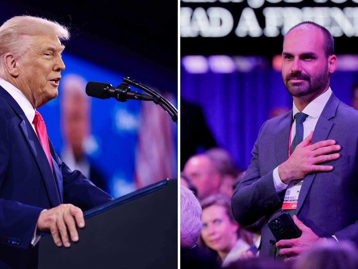 Questionado sobre o assunto, Eduardo relembrou o convite a seu pai para participar da posse de Trump (Bolsonaro não teve a viagem autorizada pelo STF) como mostra de ação do presidente americano e contemporizou: