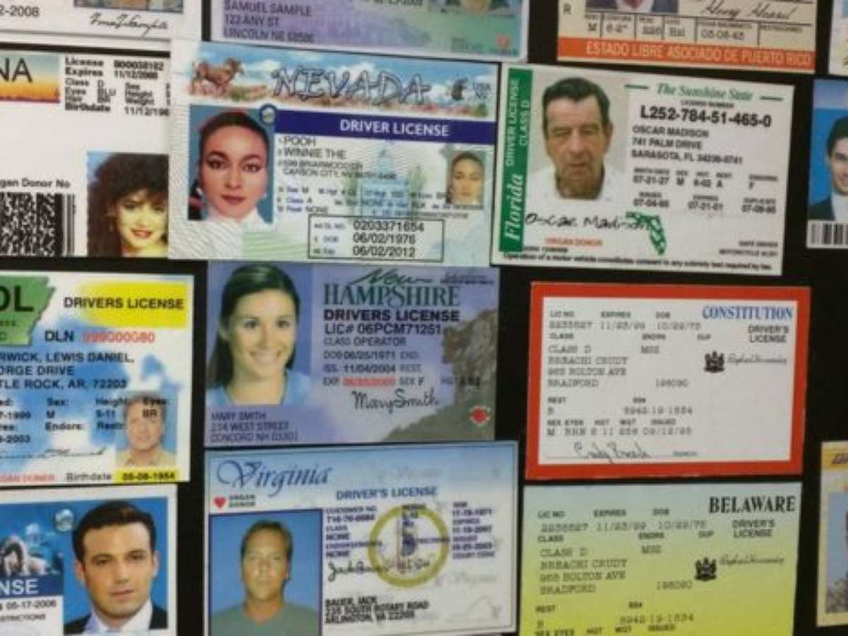 À medida que caminhamos para a oficina, cheia de armários e prateleiras, também fico surpreso com as carteiras de motorista, cartões de crédito e inúmeros pacotes de dólares falsos.