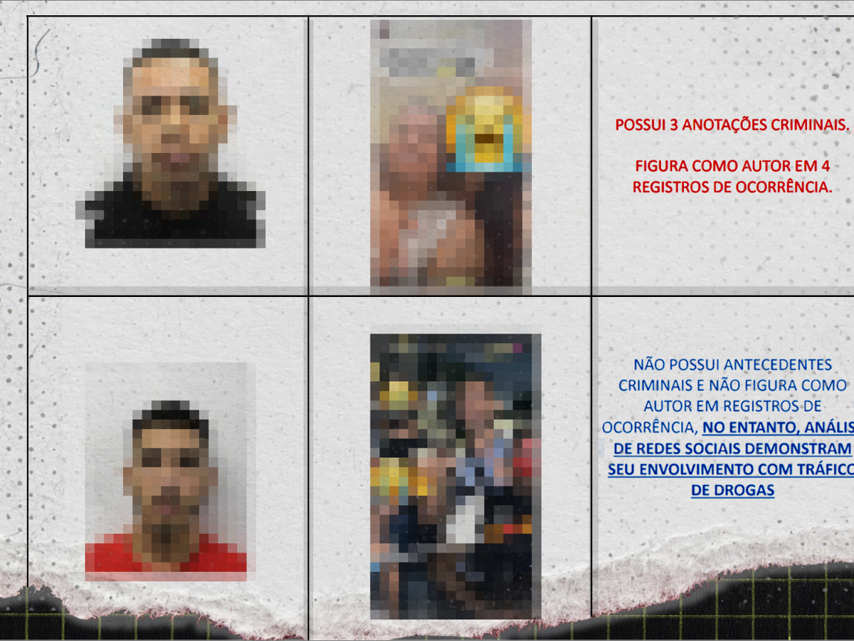 O documento exibe fotos que teriam sido supostamente tiradas de redes sociais dos mortos — como TikTok e Instagram. Em quatro das fotos mostradas pela Polícia, as pessoas aparecem segurando armas de fogo.