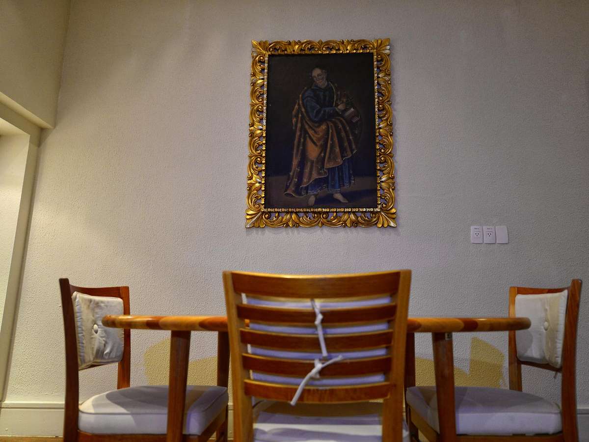 PUBLICIDADE Capa Notícias Brasil Papa Francisco no Brasil Papa Francisco no Brasil Conheça quarto em que papa Francisco repousou em Aparecida Compartilhar Detalhe de um quadro no quarto em que o papa Francisco repousou nesta quarta-feira em Aparecida Foto: Fernando Borges / Terra Terra teve acesso ao quarto do Papa no Santuário de Aparecida Foto: Fernando Borges / Terra Papa teve foto da família e chimarrão colocados como mimo em seu aposento de descanso em Aparecida Foto: Fernando Borges / Terra Quarto em que papa Francisco descansou nesta quarta-feira em Aparecida Foto: Fernando Borges / Terra Detalhe de um quadro no quarto em que o papa Francisco repousou nesta quarta-feira em Aparecida Foto: Fernando Borges / Terra Detalhe da cama usada pelo papa Francisco para um descanso em Aparecida antes da viagem para o Rio de Janeiro Foto: Fernando Borges / Terra Compartilhar Publicidade Compartilhar TAGS Papa Francisco no Brasil Notícias Publicidade