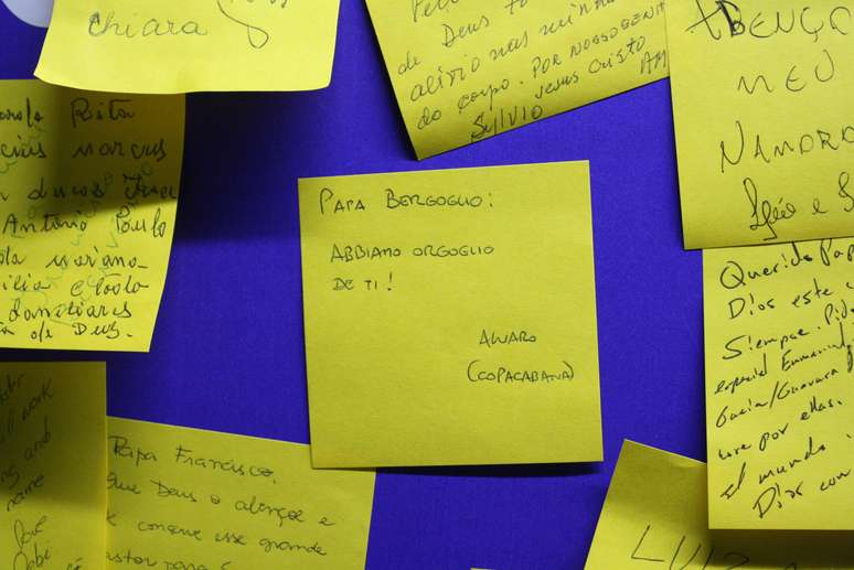 Grafia minimalista proporcionou longo texto em post it para o Papa