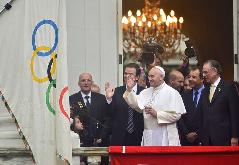 O papa Francisco recebeu a chave da cidade do Rio de Janeiro, em sua primeira agenda oficial nesta quinta-feira. Na cerimônia, ocorrida no Palácio da Cidade, na zona sul, o pontífice abençoou as bandeiras olímpica e paraolímpica, que estão no Rio, já que o município será sede dos Jogos Olímpicos de 2016.