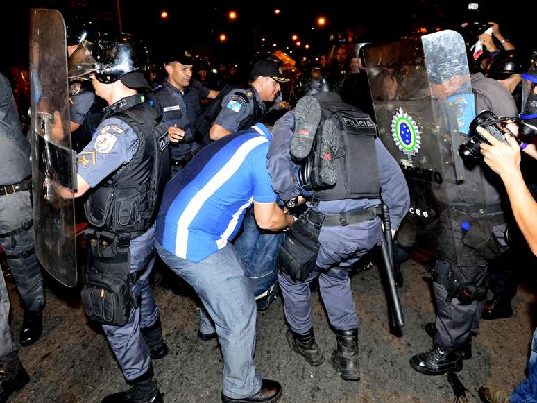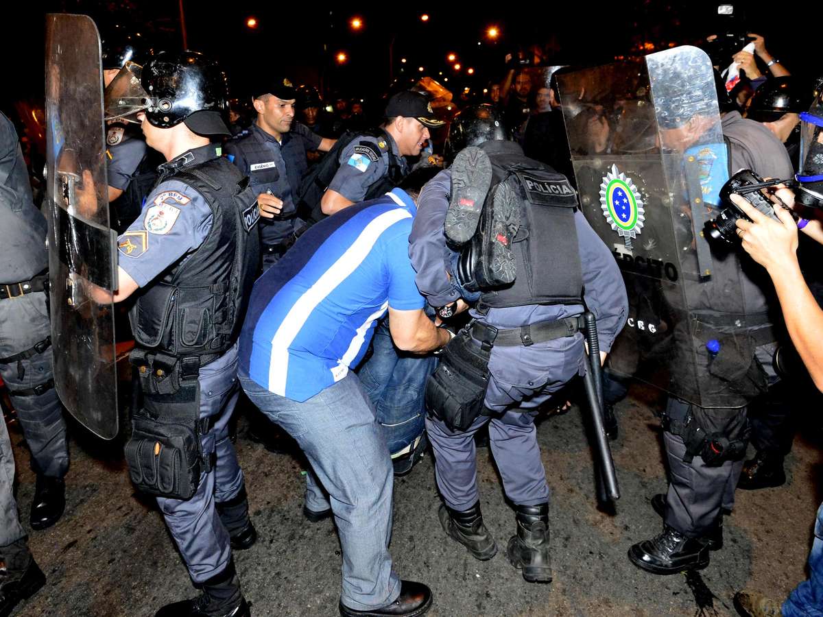 22 de julho - Policiais e manifestantes entram em confronto durante protesto nesta segunda-feira