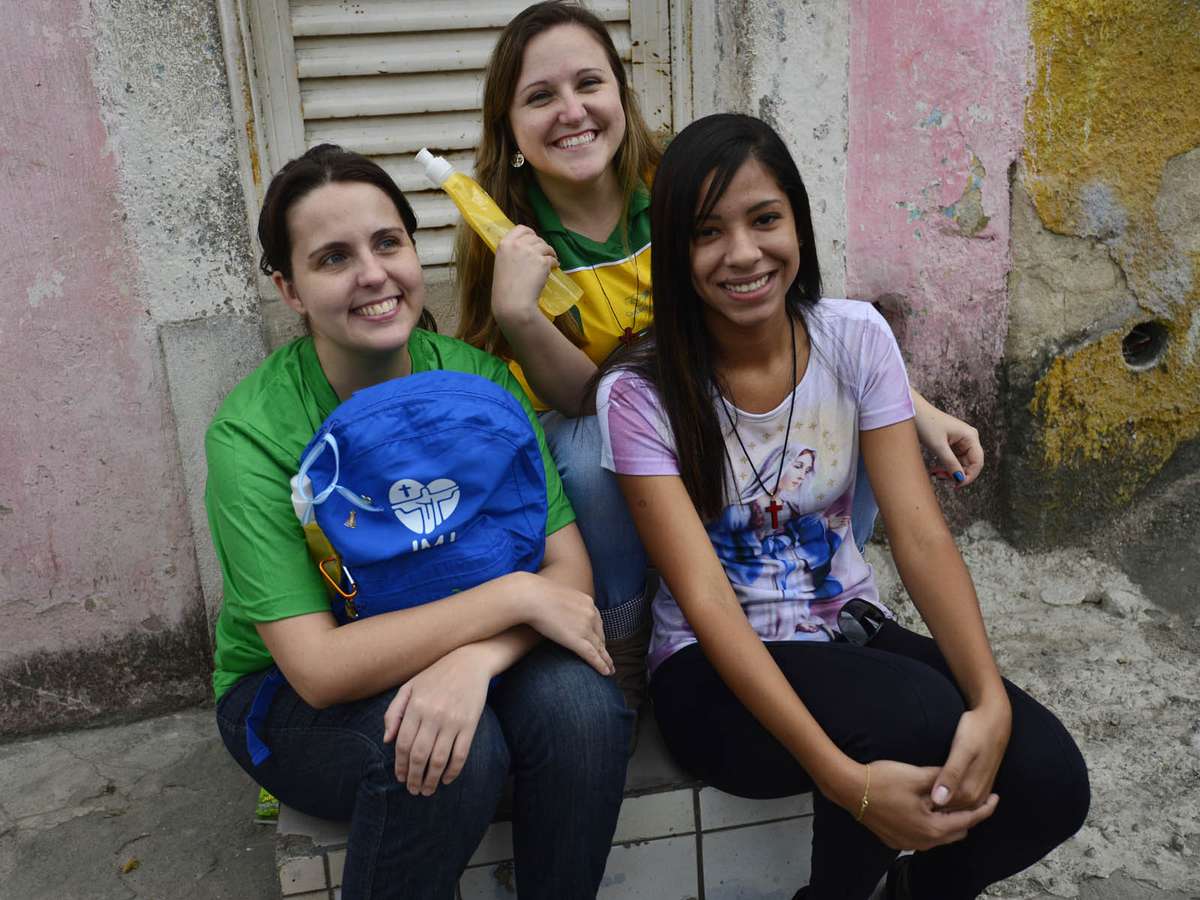 Por mais que a espera seja longa e as informações, desencontradas, o clima é de alegria entre os peregrinos, sempre em grupos numerosos, e cantando a todo tempo canções católicas. Caso das Mensageiras do Divino, de Aparecida do Norte, no interior de São Paulo. Na véspera da visita do Pontífice à cidade natal das peregrinas, elas formaram uma espécie de coral para espantar o frio e as longas horas de espera.