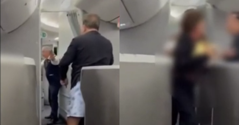 Segundo relatos nas redes sociais, a mulher e o passageiro que gritou no vídeo foram retirados do avião.