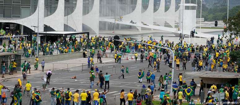Vestidos com as cores verde amarela e pregando um golpe militar, os bolsonaristas invadiram primeiro o Congresso e depois se dirigiram para as sedes dos outros poderes, nunca sendo barrados de maneira decisiva pelas forças de segurança do Distrito Federal, o que levantou acusações de conivência ou incompetência das autoridades locais.