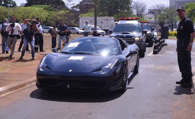 PUBLICIDADE Capa Notícias Brasil Polícia Polícia Ação da PF contra lavagem de dinheiro em 10 Estados apreende até Ferrari Compartilhar Ferrari apreendida está avaliada em mais de R$ 1,9 milhão Foto: Elza / Agência Brasil Operação apreendeu diversos carros de luxo, incluindo uma Ferrari 458 Spider, uma Lamborghini Gallardo Spyder e uma Mercedes-Benz SLS Foto: Elza Fiuza / Agência Brasil Ferrari apreendida está avaliada em mais de R$ 1,9 milhão Foto: Elza / Agência Brasil Lamborghini Gallardo e Chevrolet Corvette também estão entre os carros de luxo apreendidos Foto: Elza Fiuza / Agência Brasil Compartilhar Publicidade Compartilhar TAGS Polícia Notícias Publicidade