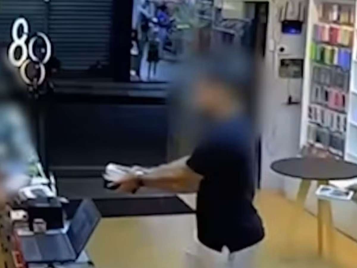Segundo a Polícia Civil, clientes que estavam no estabelecimento foram obrigados a recolher os aparelhos das prateleiras sob ameaça de arma de fogo.