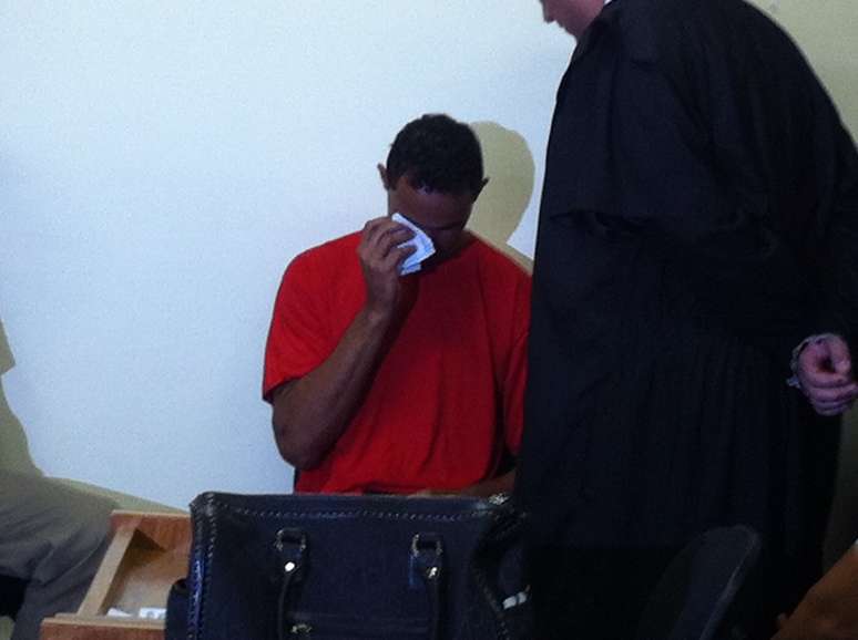 5 de março - O goleiro cabisbaixo durante seu julgamento