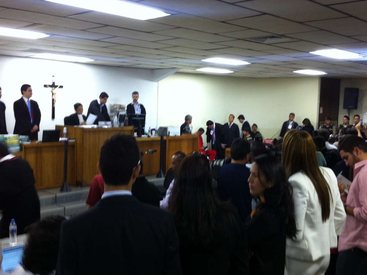 5 de março - Advogados conversam durante o julgamento