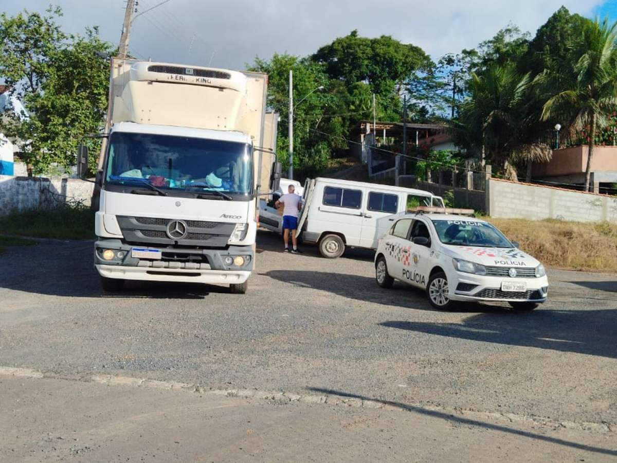 Ao serem acionados para a ocorrência, os policiais foram ao endereço na rua João Carlos Janete e encontraram quatro criminosos, o caminhão roubado e um furgão, onde a mercadoria tinha sido colocada.
