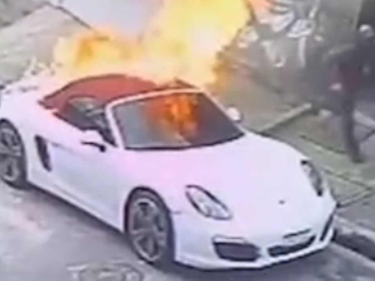 Dupla em moto incendeia Porsche conversível em São Paulo; câmera flagra ataque