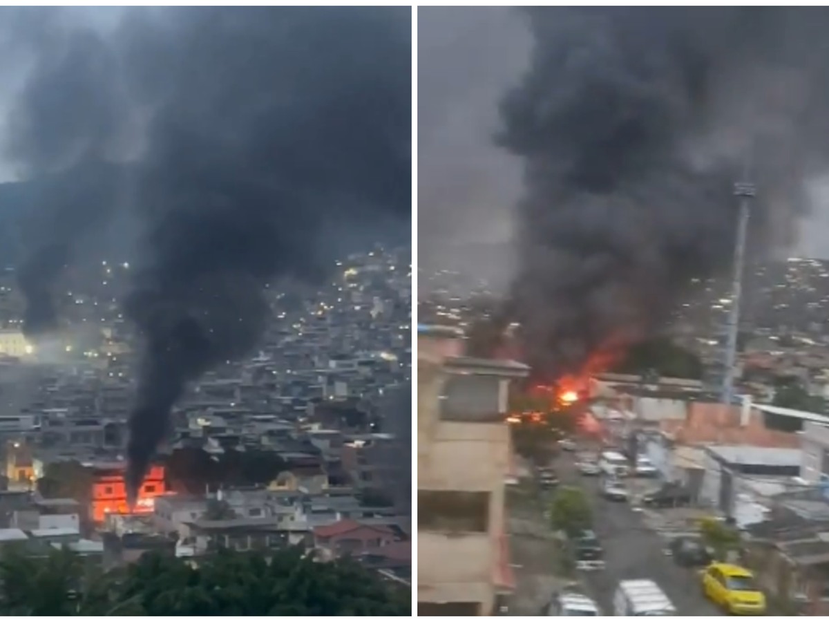 Nas imagens também é possível ver barricadas em chamas e a fumaça escura de vários pontos da região. Após a chegada da polícia às comunidades, criminosos reagiram com tiros e com barricadas.