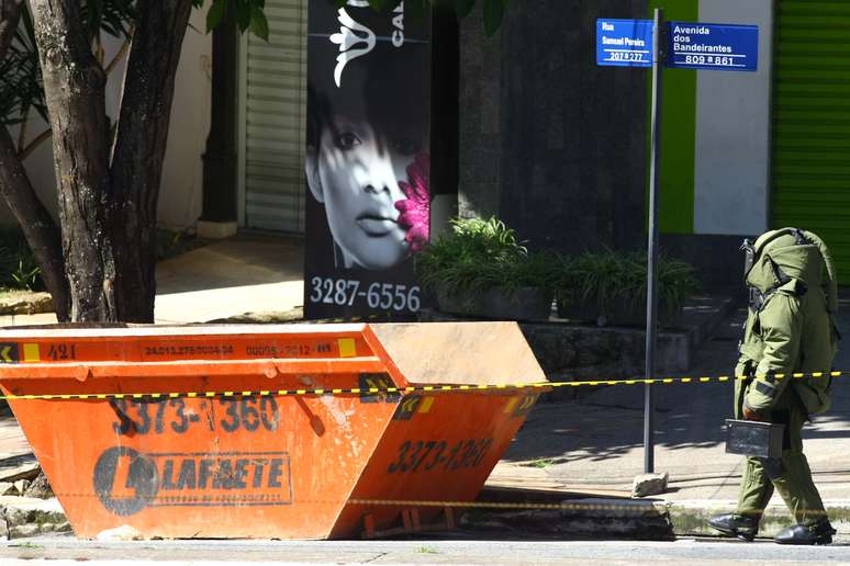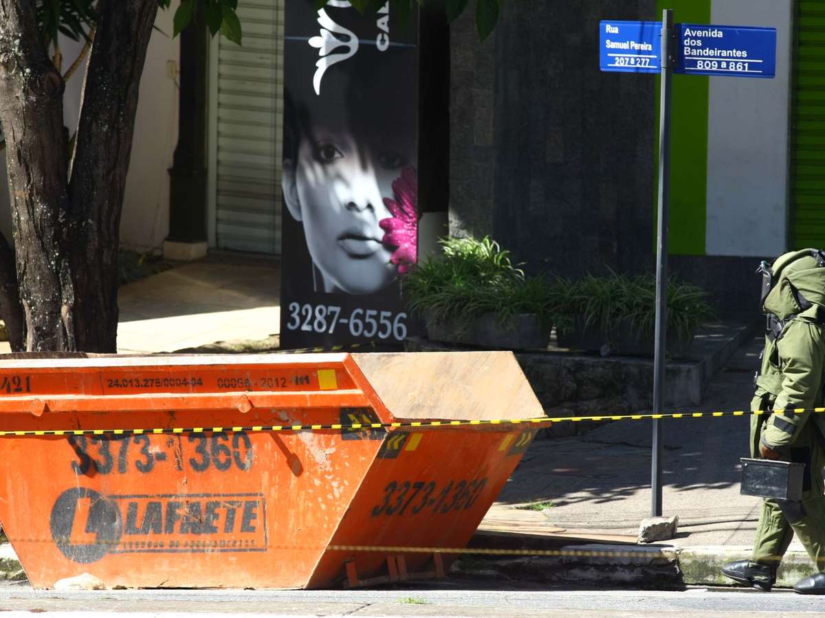 Policiais militares do Grupo de Ações Táticas Especiais (Gate) isolaram na tarde deste domingo um trecho da avenida Bandeirantes, no bairro Mangabeiras, região centro-sul de Belo Horizonte (MG), após dois artefatos explosivos serem encontrados em uma caçamba de entulho.