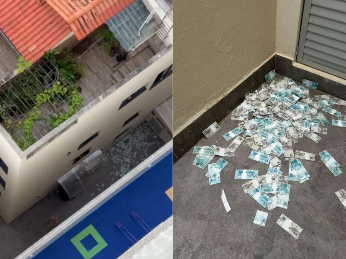 Nas imagens divulgadas pelas autoridades, é possível ver montantes de notas de R$ 100 e R$ 200 espalhados pelo chão do corredor que fica em frente à janela. Pelo vídeo, nota-se que a quantia caiu próxima a uma porta.
