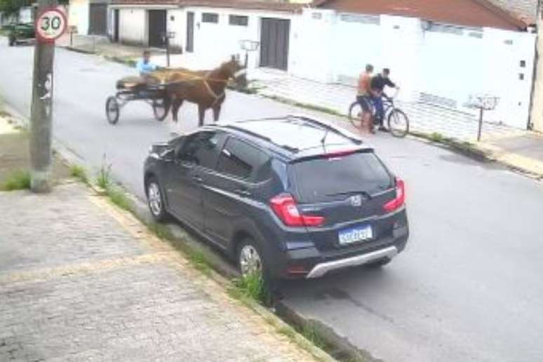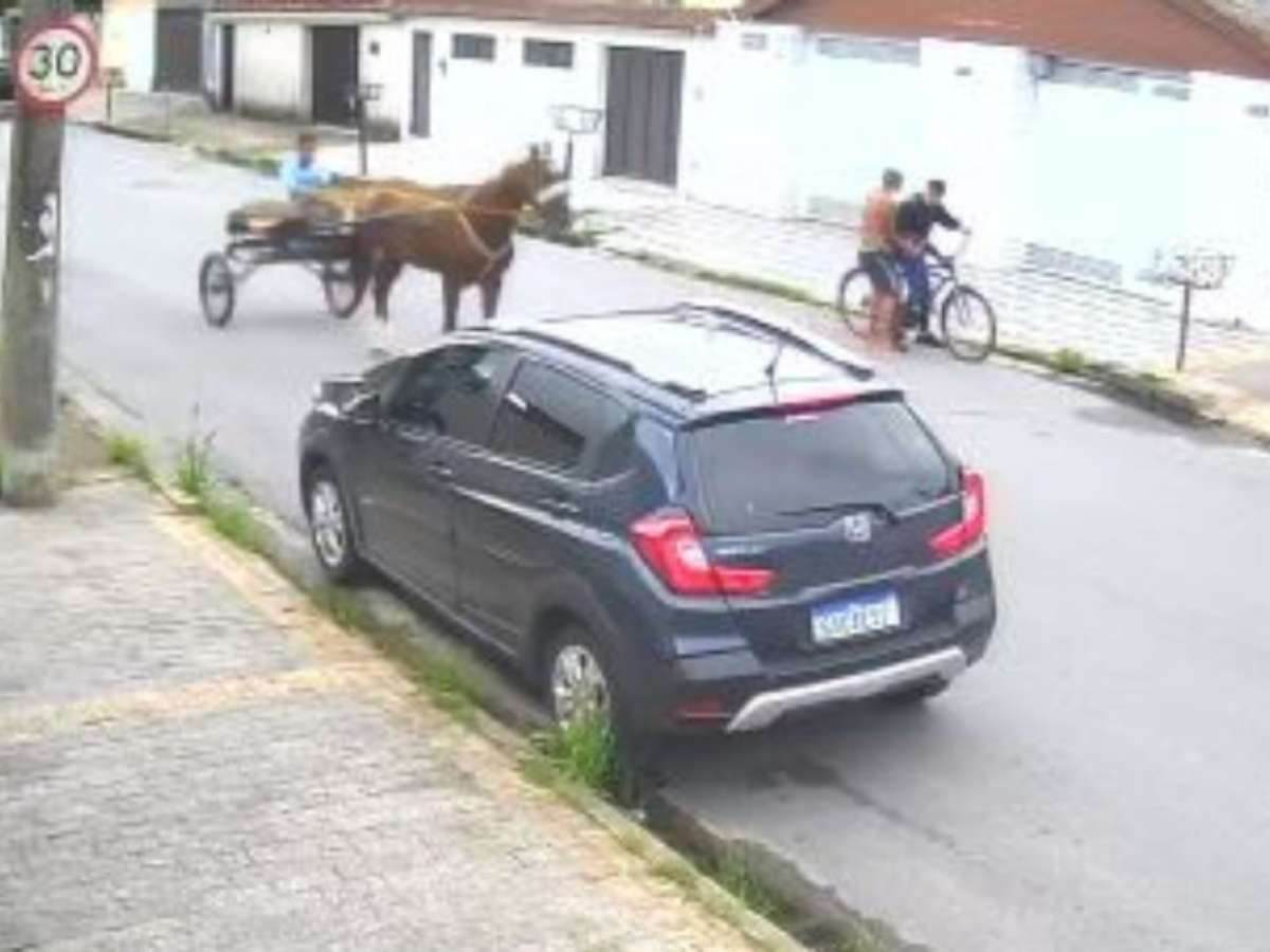 Uma dupla de charrete roubou a bicicleta de um rapaz que andava pelo bairro Santo Antônio, em Guarujá, litoral de São Paulo. O crime inusitado aconteceu na terça-feira, 29, por volta das 13h15, e foi flagrado por uma câmera de segurança.