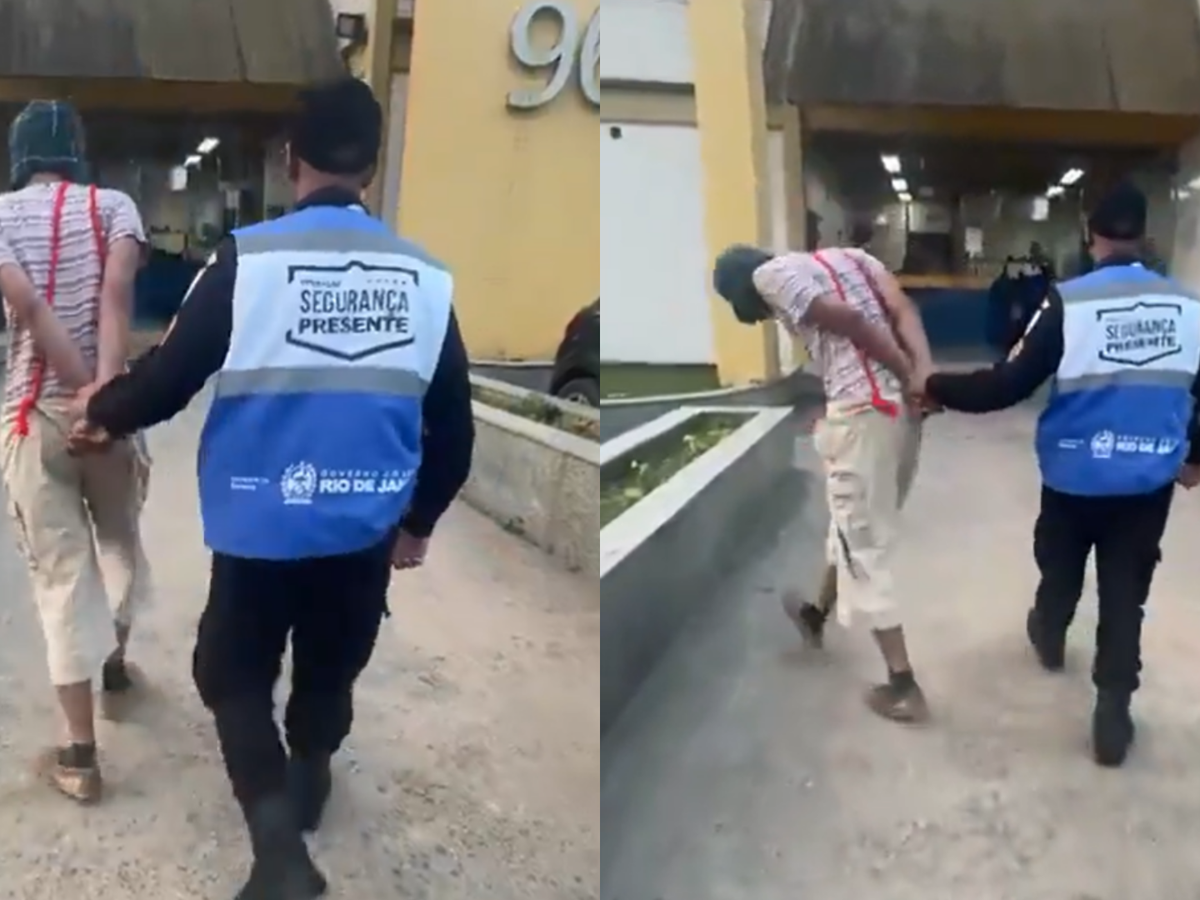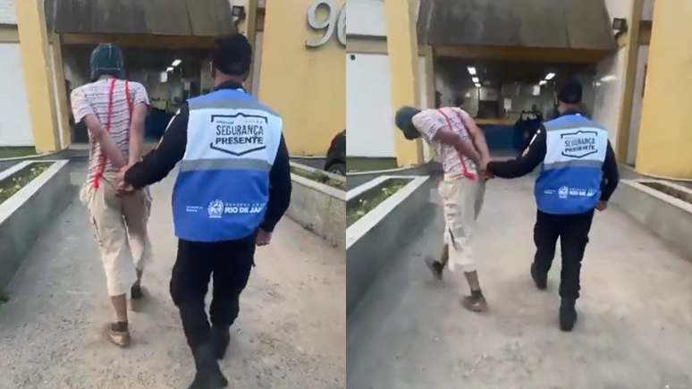 Um vídeo mostra o homem sendo conduzindo à delegacia imitando o personagem