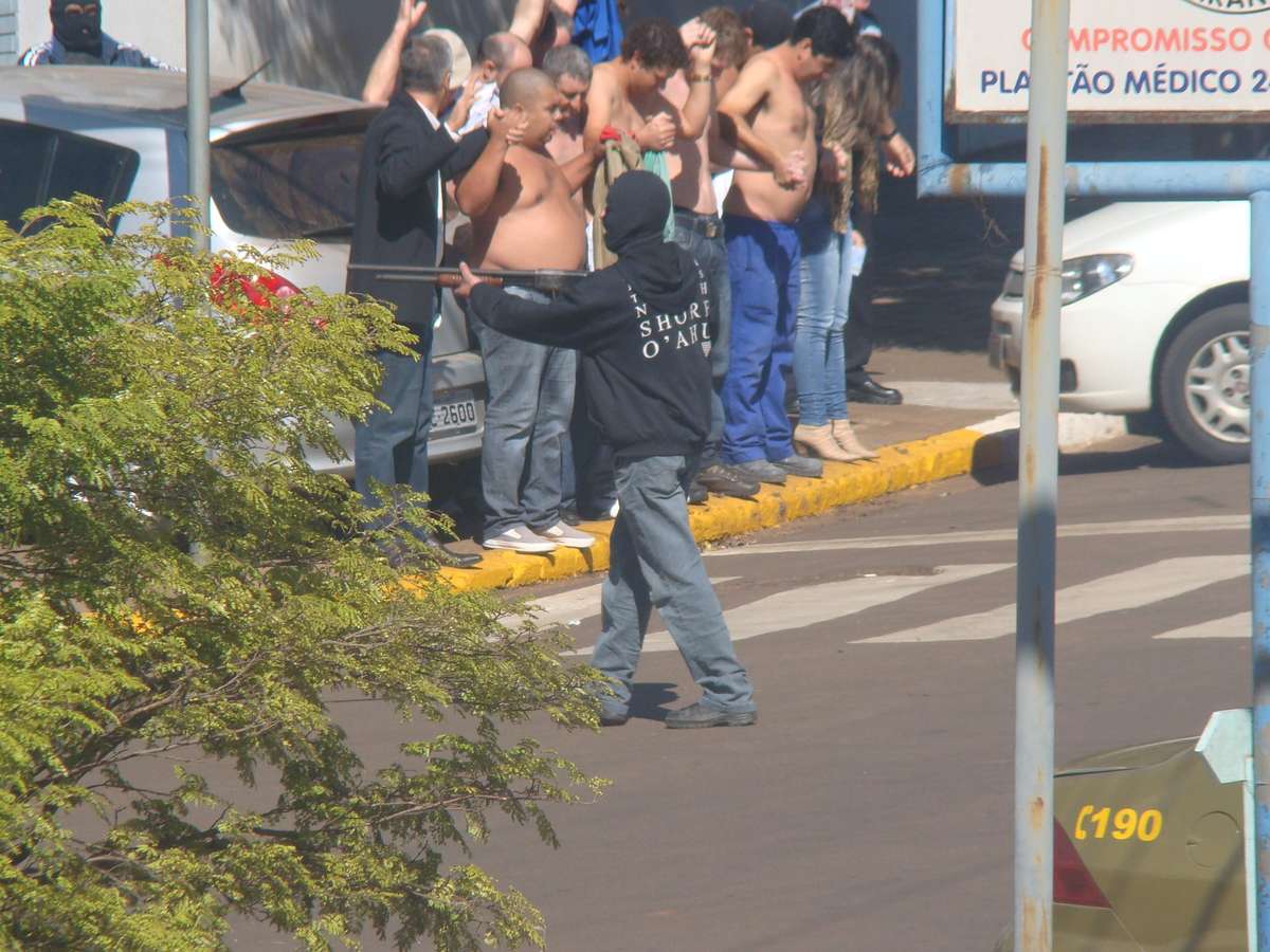 Os criminosos chegaram ao centro de Sarandi e fizeram dois PMs de reféns, além dos clientes do Banco do Brasil e de moradores que passavam pelo local. O empresário Andre Ferronato afirmou que viu dois dos criminosos entrando no banco com os PMs enquanto os outros dois trancavam o trânsito na rua.